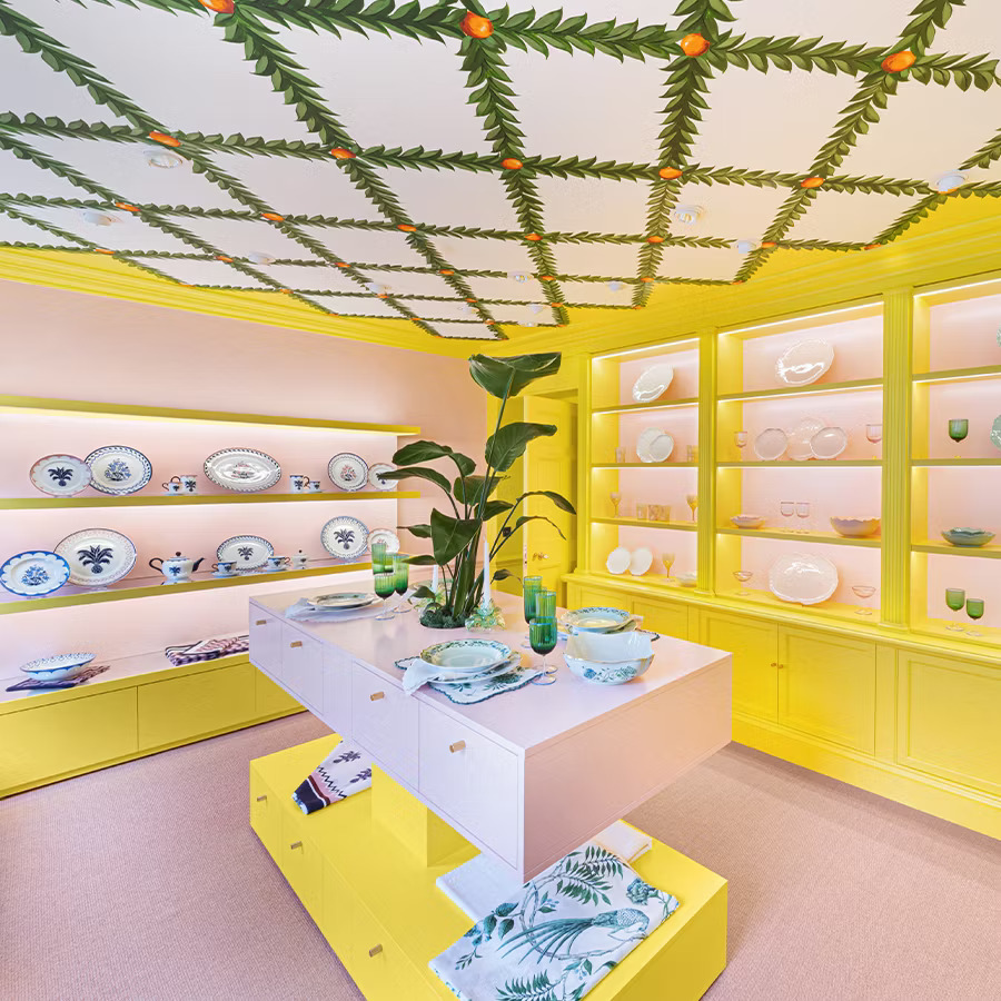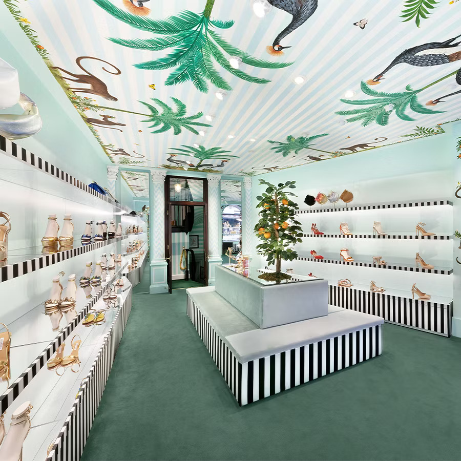 Vikkaso has brought a new level of sophistication to the three-floor Aquazzura London showroom with their exceptional artistry. Designed by the renowned Marie-Anne Oudejans, the space radiates elegance,it’s Vikkaso’s masterful execution that truly stands out. Each floor is a unique display of creativity, featuring stunning wall murals and intricate designs that perfectly complement Aquazzura’s luxurious footwear collection. The vibrant colors and detailed artwork elevate the showroom's ambiance, reflecting both the brand's flair for style and both's artistic innovation, making their contribution the highlight of this opulent space.