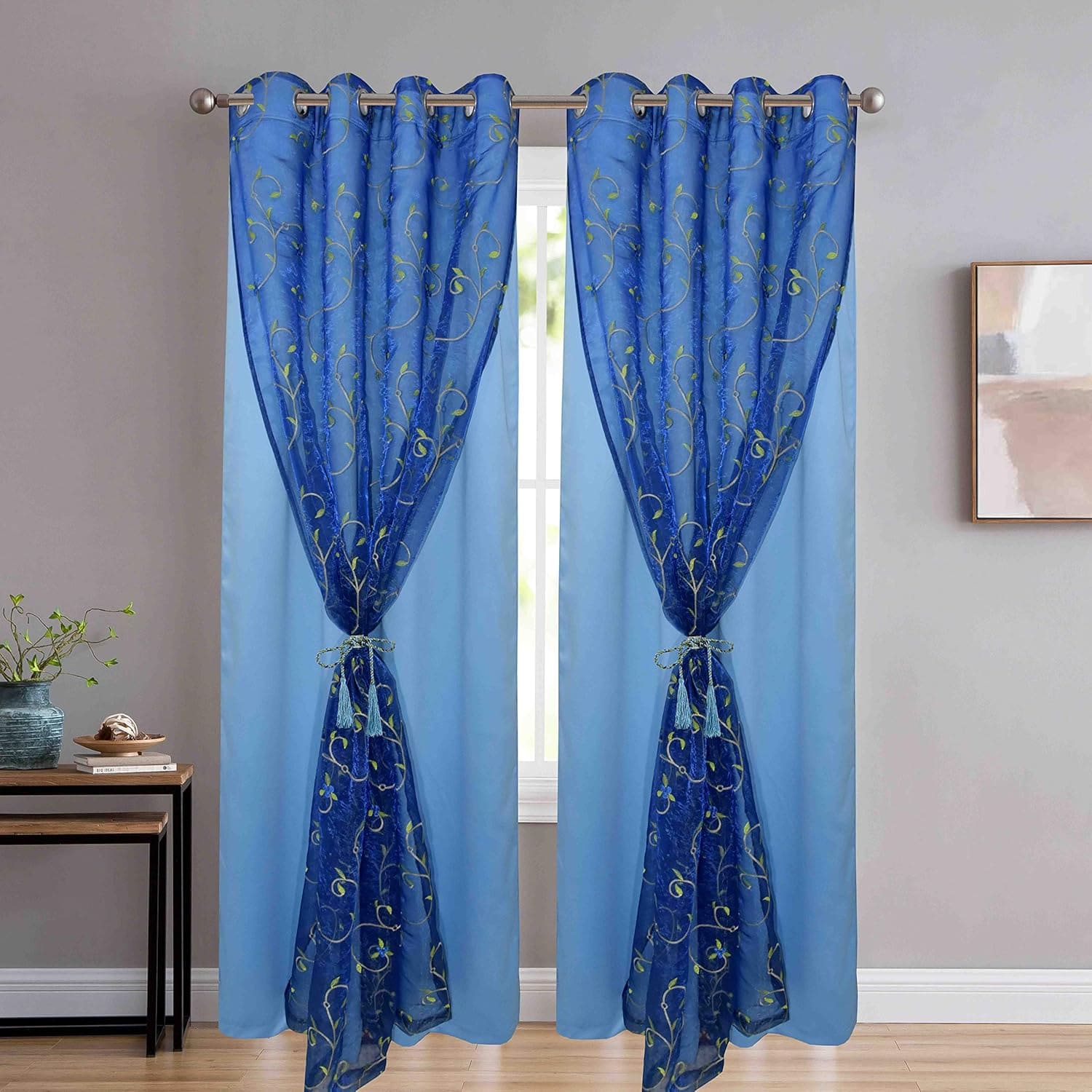 Double Curtains 2 in 1 Velvet Curtain with Embroidery Curtain Best for Every Interior Living Room Bedroom - Set of 2 Pieces